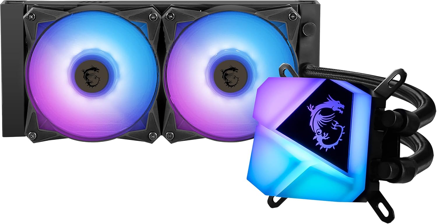 MSI MAG CORELIQUID C240 – Ftohës me ujë "All-in-One" për CPU Bllok pompë me ndriçim ARGB mbresëlënës – Pompë e integruar në radiator – Teknologji ftohjeje me qarkullim të ndarë (Split-Flow) – Tuba rezistentë ndaj avullimit – I përputhshëm me AMD & Intel