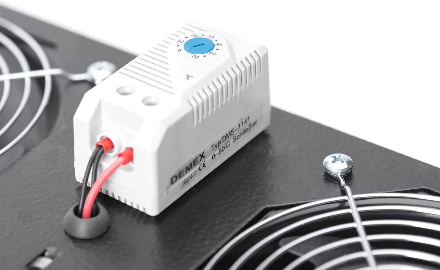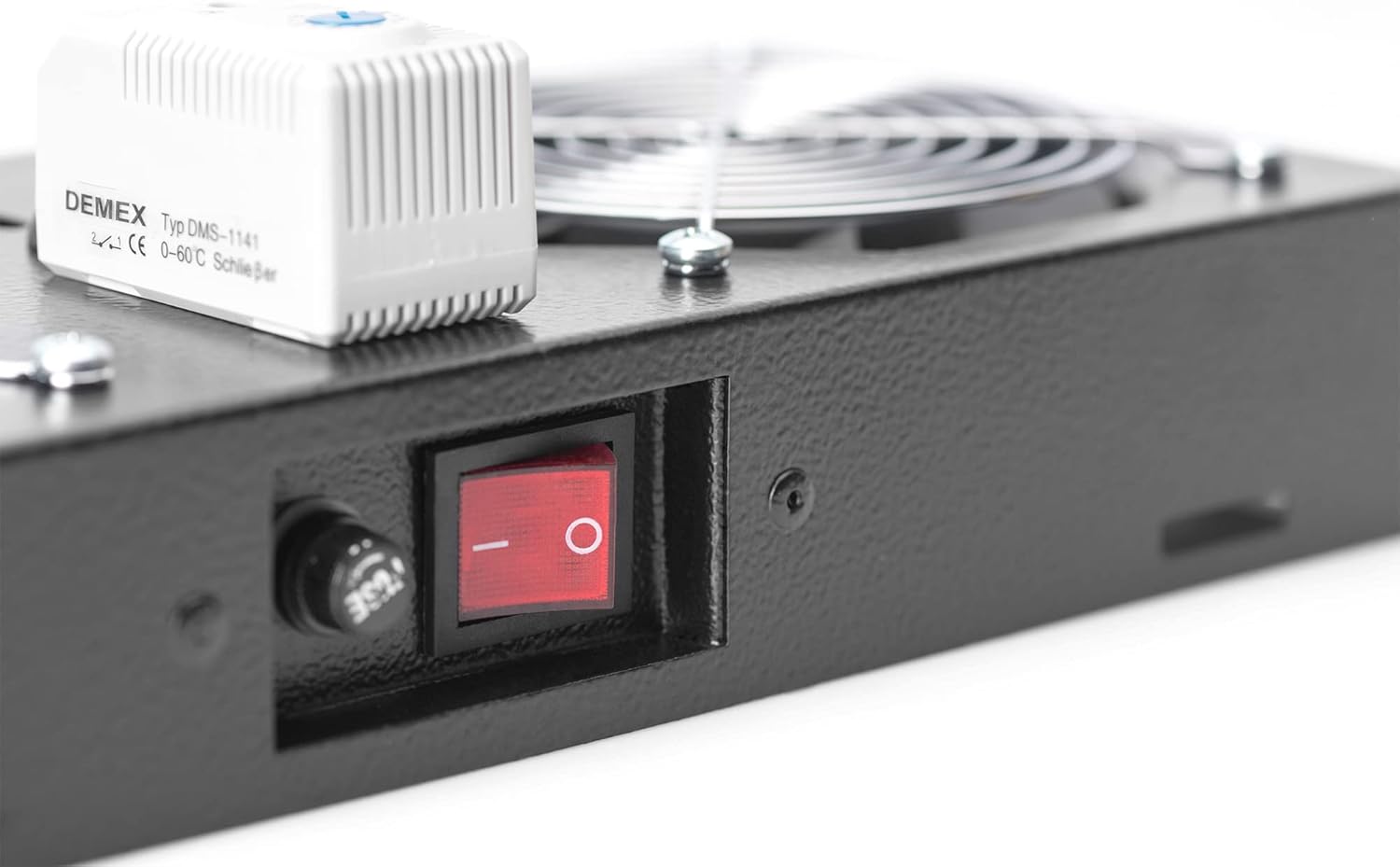 Njësia e Ventilimit në Çati për Kabinete Murale / Rack DIGITUS, me 2 Ventilatorë dhe Termostat, e Zezë