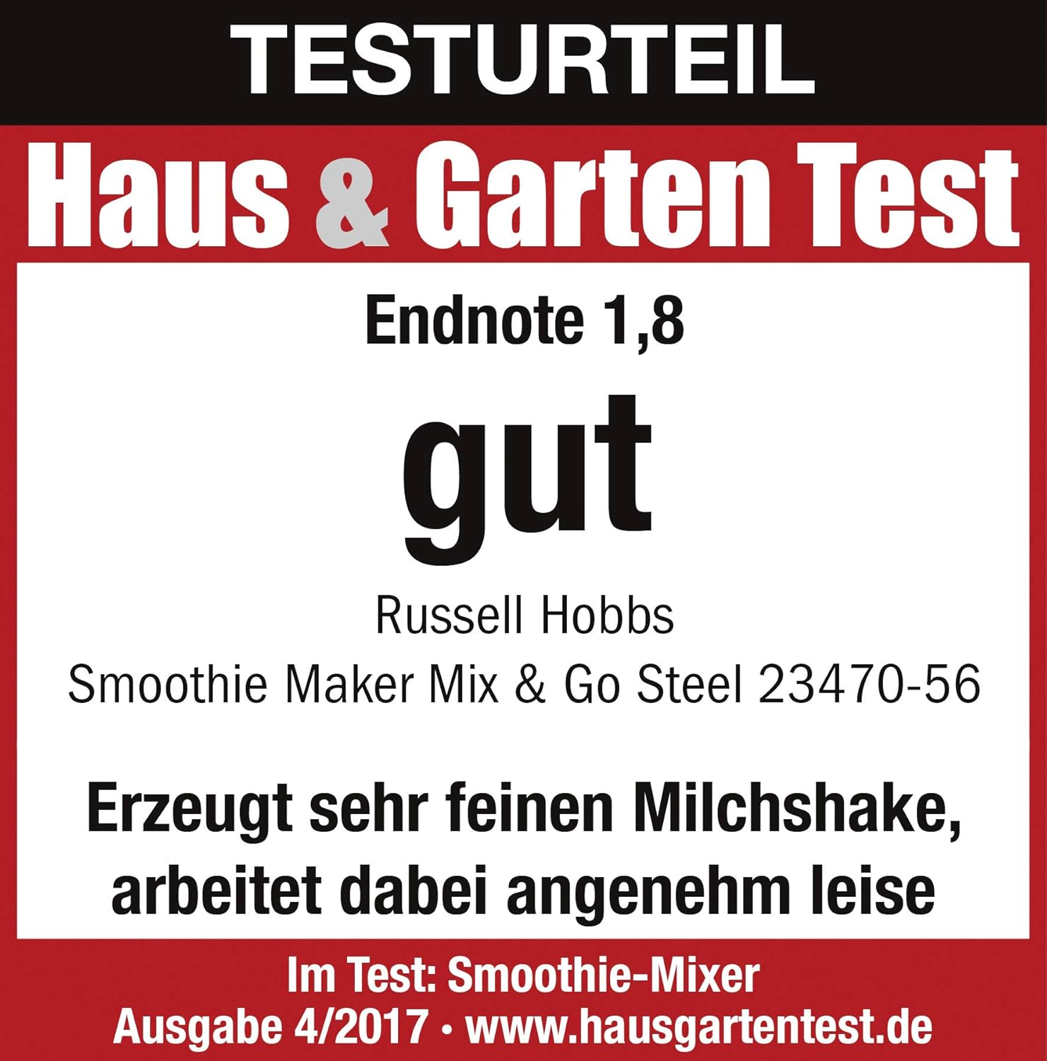 Russell Hobbs Mix & Go Steel – Blender / Smoothie Maker (300 W), Çelik inox, përfshihet 1 shishe pijesh 600 ml